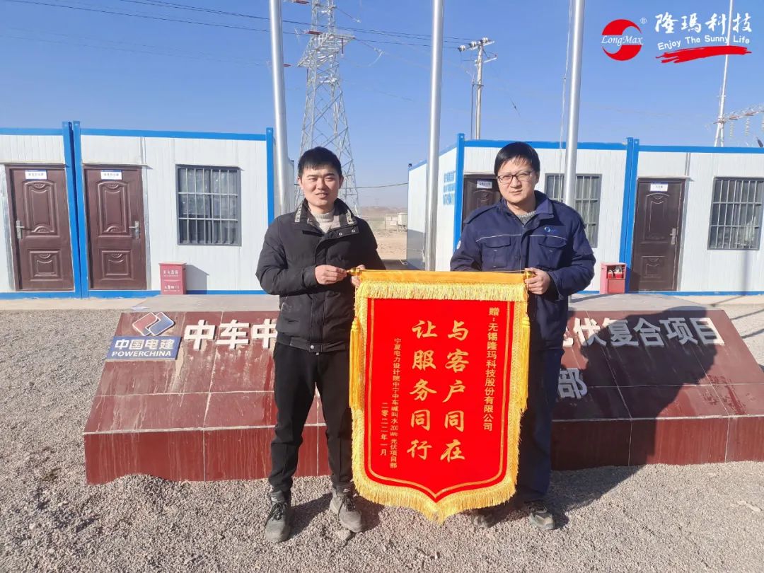 近日,我司售后服务部收到来自宁夏回族自治区电力设计院有限公司的表彰锦旗,对我司及服务人员在中车中宁喊叫水200MWp光伏复合项目上优良的工作作风和高质量技术服务提出表扬。