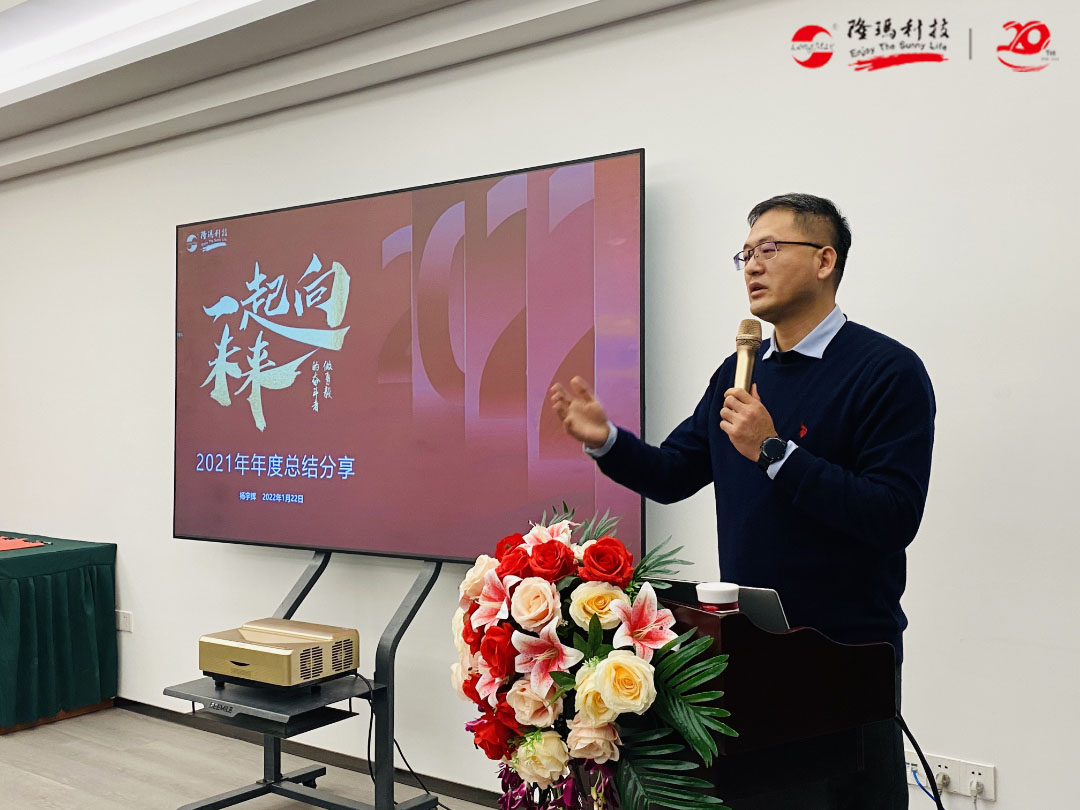 会议在公司杨朝辉董事长的讲话中拉开了帷幕!总结了过去的2021年公司取得的优异成绩,并展望美好的2022年公司发展蓝图。杨董特别提出治党治国的方针才能治理好企业,紧跟党的脚步,让公司更好的发展,也为公司的发展制定了四五规划和“7+2”战略,引领公司一路向前,同时也表示在疫情的冲击下外部环境十分严峻,未来的挑战也会是巨大的,员工不但要提升认知,还要营造思考的环境,注重内涵式发展,做好准备面对和解决所有的问题。