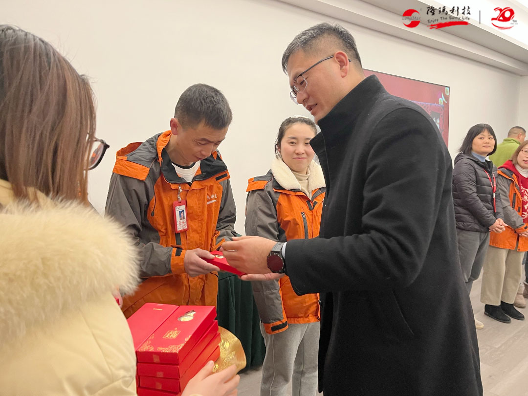 在2021年,我们一共有20名员工在公司服务满5/10/15周年。在年会上,董事长亲自为他们颁发了奖品,感谢他们在公司多年的付出,与公司共同成长。
