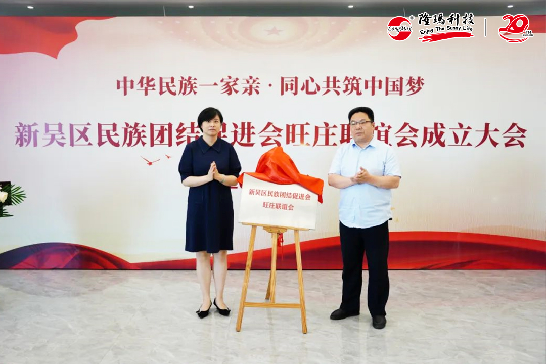 新吴区委统战部副部长赵文斌、街道党工委副书记浦咏贤共同为新吴区民促会旺庄联谊会揭牌。