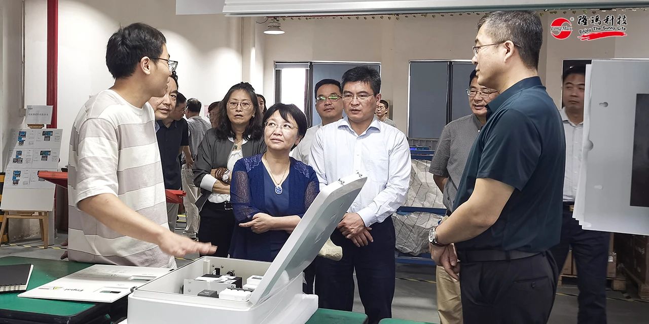 随后,考察组先后来到了生产基地一楼汇流箱生产车间和三楼并网箱生产车间考察。周副主席一行认真听取有关生产情况的介绍,在并网箱车间,她让工程师拆下外壳,了解产品工作原理,连连称赞,并对产品改进提升方面提出了一些宝贵的意见和建议。