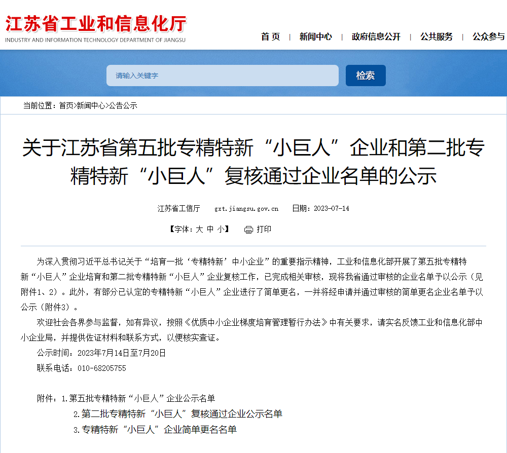 日前,根据工信部统一部署,江苏省工信厅发布了《关于江苏省第五批专精特新“小巨人”企业和第二批专精特新“小巨人”复核通过企业名单的公示》,bevictor伟德通过层层筛选,在众多参评企业中脱颖而出,成功获得国家级专精特新“小巨人”企业称号。