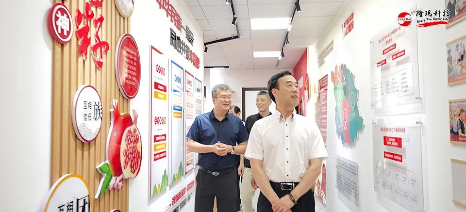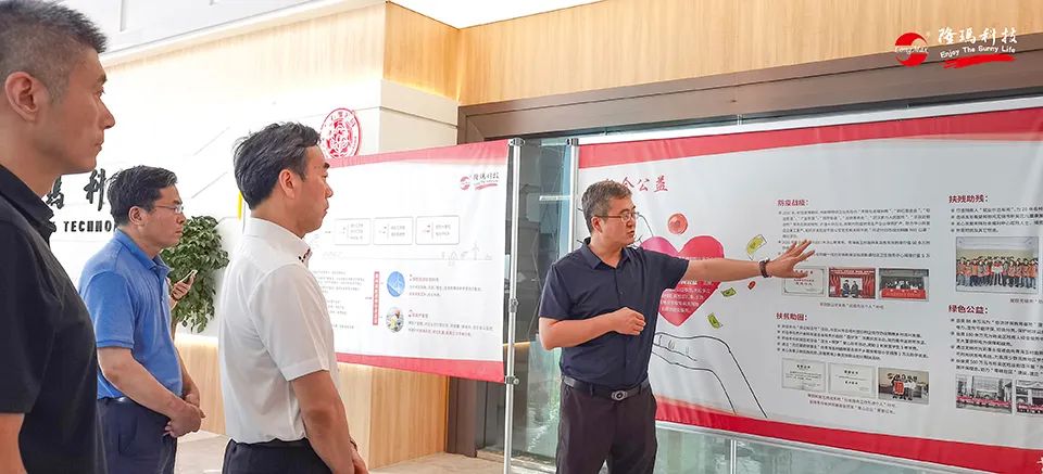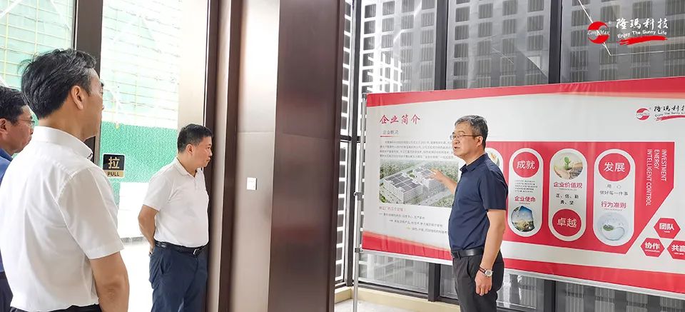 许立新副主席一行领导首先来到公司一楼展厅,详细了解公司的发展情况。董事长杨朝辉分别介绍了公司概况,未来发展规划及成立21年来在“科技创新”、“一带一路”国际化发展战略和社会公益方面所取得的成绩。