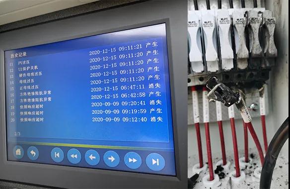 案例3:汇流箱在并网合闸时逆变器报方阵绝缘阻抗异常,就地核查时,组串已烧毁。