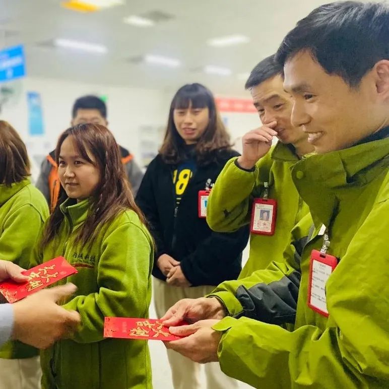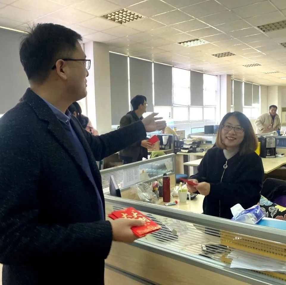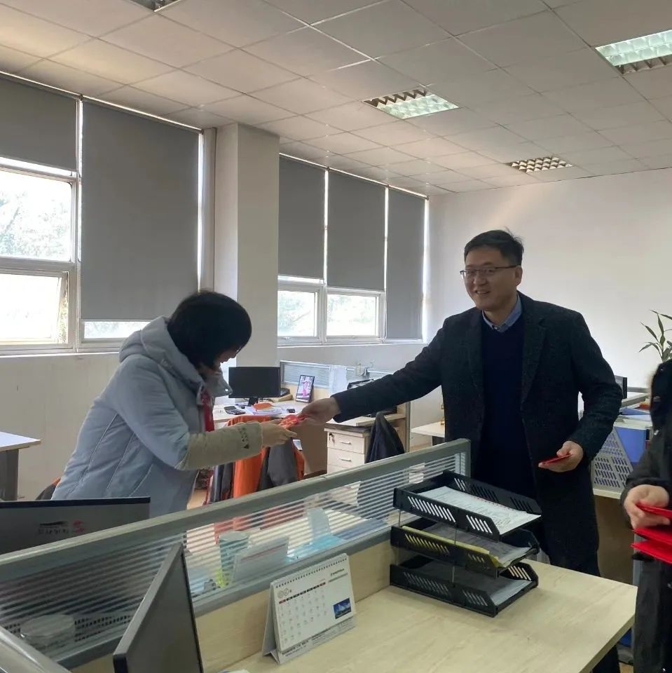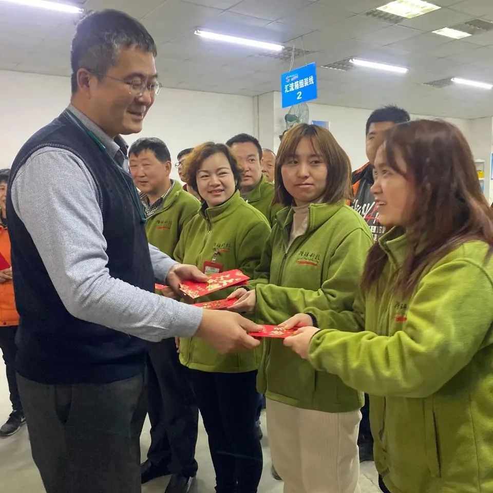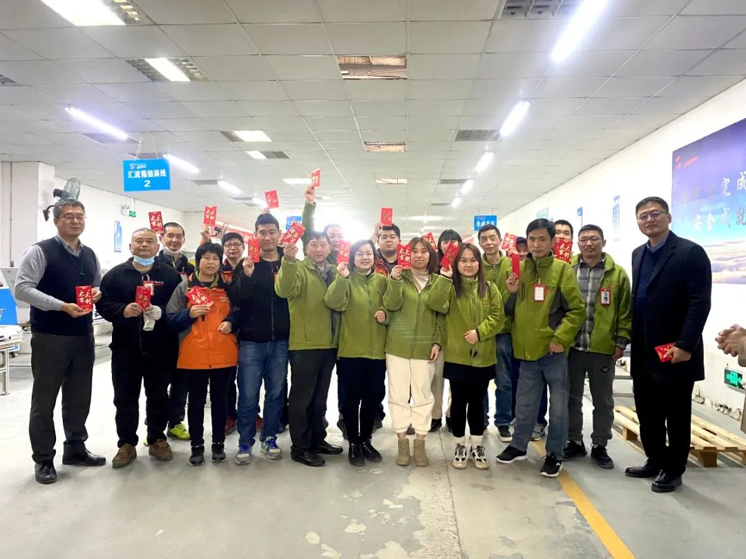 在喜气洋洋的氛围中,公司领导与员工们亲切握手交谈送上新年祝福。