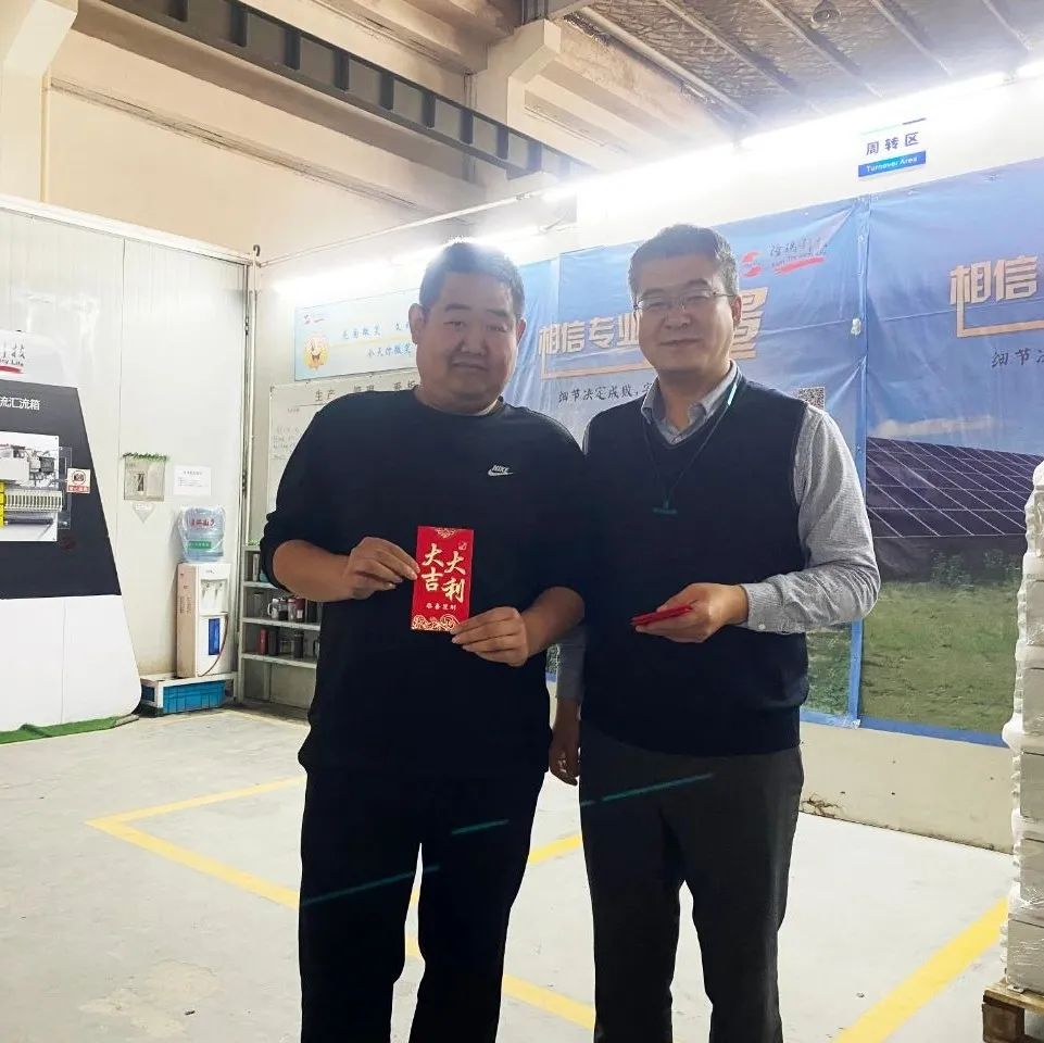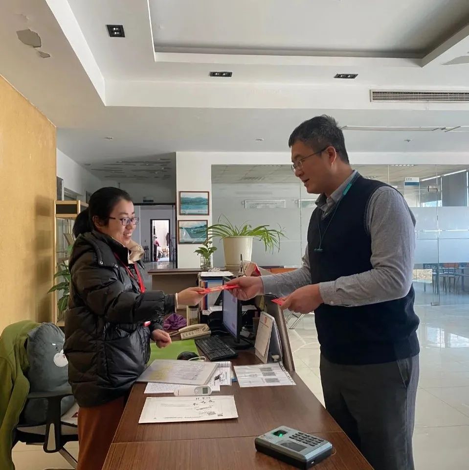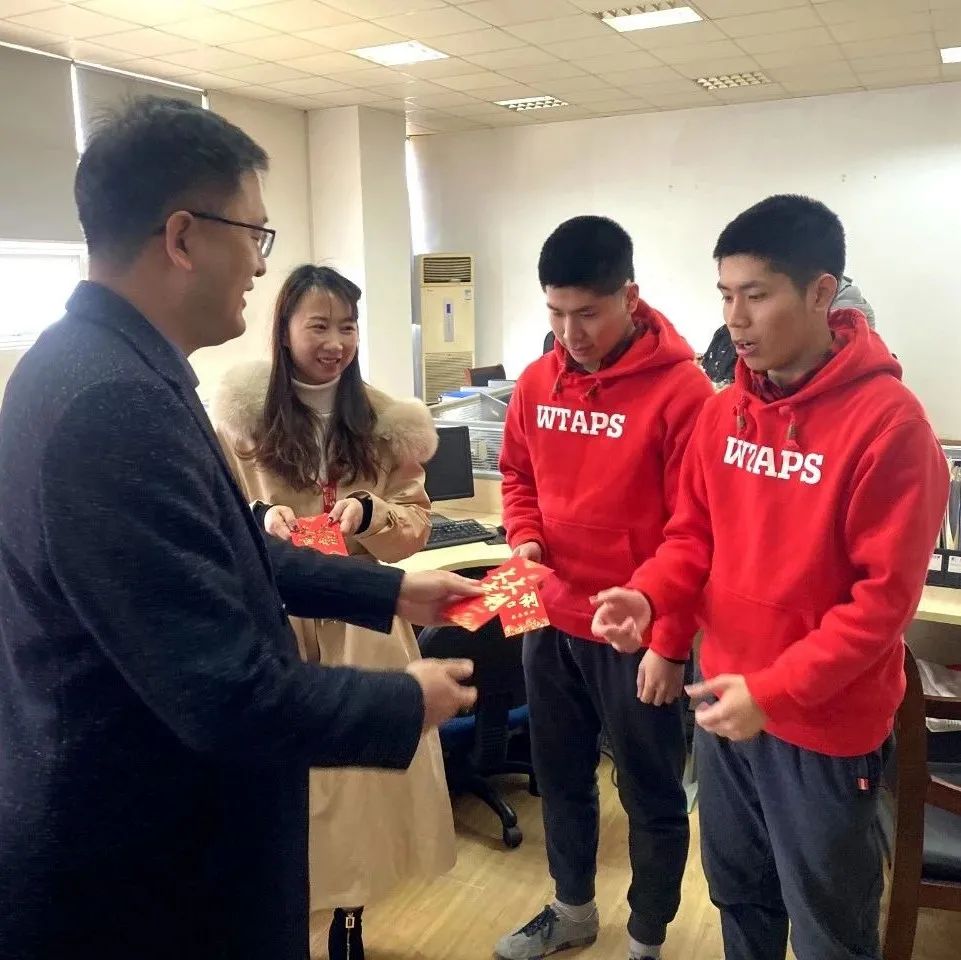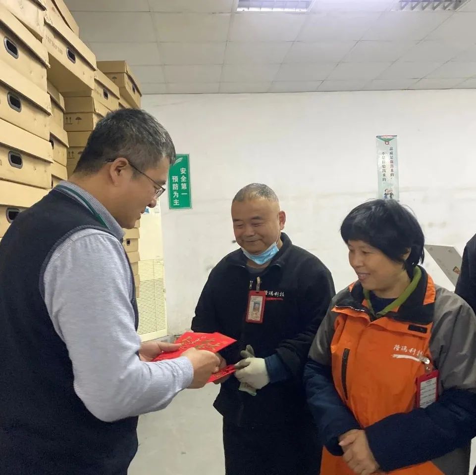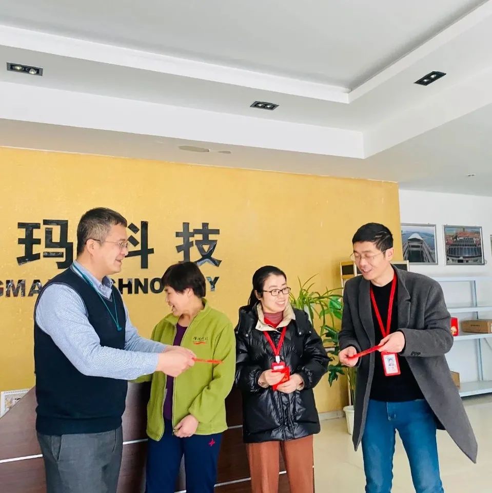 在喜气洋洋的氛围中,公司领导与员工们亲切握手交谈送上新年祝福。