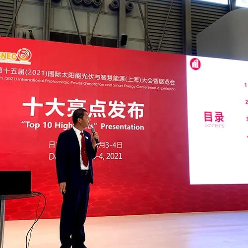 2021年6月5日,SNEC展会“十大亮点”评选活动在上海新国际博览中心成功举办,也是“SNEC EXPO”的重要内容之一。活动旨在使展会最出色的技术与产品,能够脱颖而出,促进行业面向科技前沿,占领科技制高点,着力攻关核心技术,把握未来发展主动权。bevictor伟德受邀出席发表演讲,并荣膺“十大亮点”兆瓦级翡翠奖。