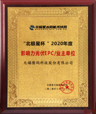 On October 23, 2020, the "Polaris Cup" 2020 photovoltaic influence brand selection and awarding ceremony ended in Beijing. After fierce competition, Wuxi Longma Technology stood out from many shortlisted companies and won the 2020 Impact Photovoltaic EPC/Owner Unit Blockbuster Award, which fully demonstrated the brand influence of Wuxi Longma Technology.