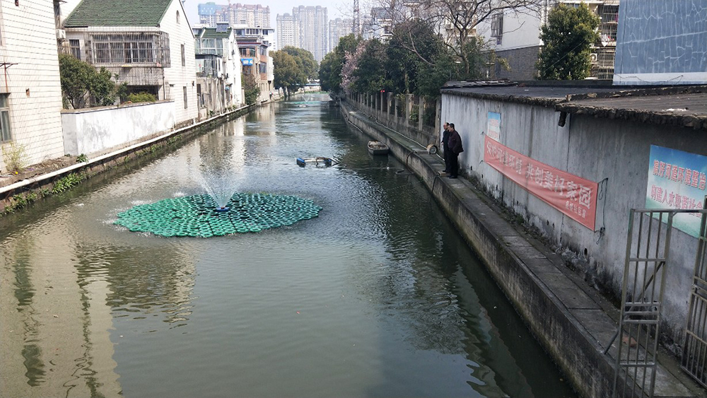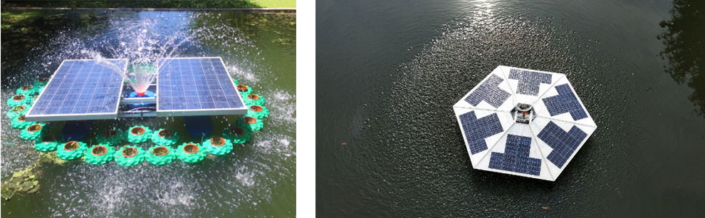 通过太阳能光伏+应用的方式,实现水体增氧和景观效果